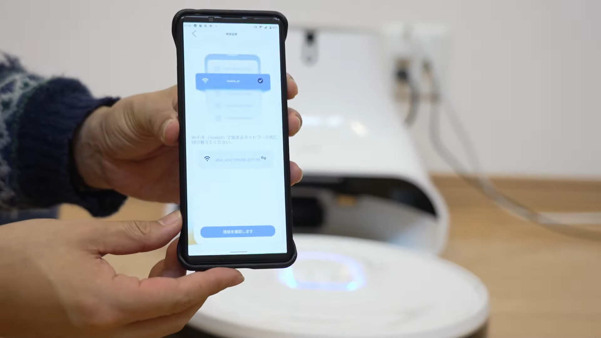 入力したら、スマホの接続Wi-Fiを、一度Neabot Q11のローカルWi-Fiに手動で切り替えると、自動で入力したネットワークに接続してくれます。