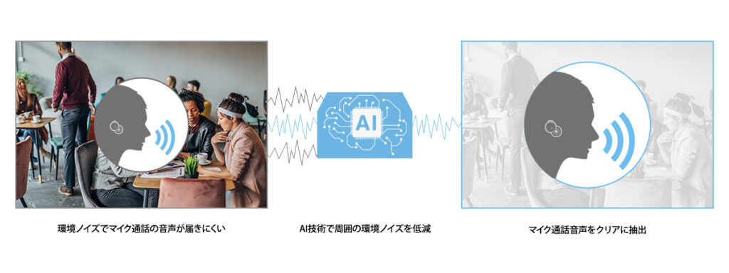 LinkBudsでは、環境ノイズを分離するアルゴリズムによって、騒がしい場所でも自分の声を抽出できます。
