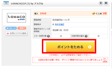 あとは、右側に「ポイントをためる」という箱があるので、そこをクリックすると、「ロハコ」のトップページに飛びます。