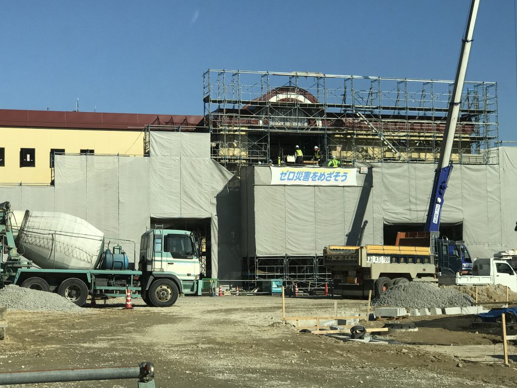 北東側の駅舎はもう見えていて、内装工事や周辺の道路工事が急ピッチで進められています。