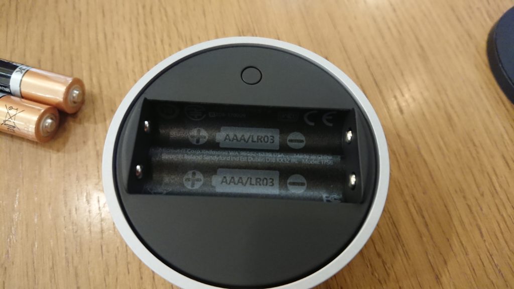 そして、Surface Dial本体の電池入れ近くについているボタンを5秒間長押しします。