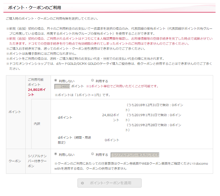クーポンはdocomo with対象機種の場合利用できませんので注意してください。