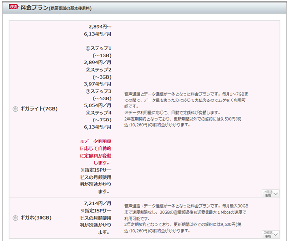 新旧料金プラン、どちらを申し込むか選択【機種変更のみ】