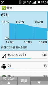 このときは、2日の使用でも67%残っており、十分電池は持っていることがわかります。