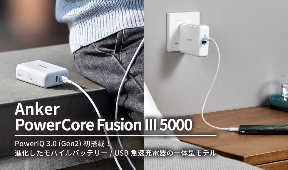 Anker PowerCore Fusionは、ベストセラーのモバイルバッテリーですね。