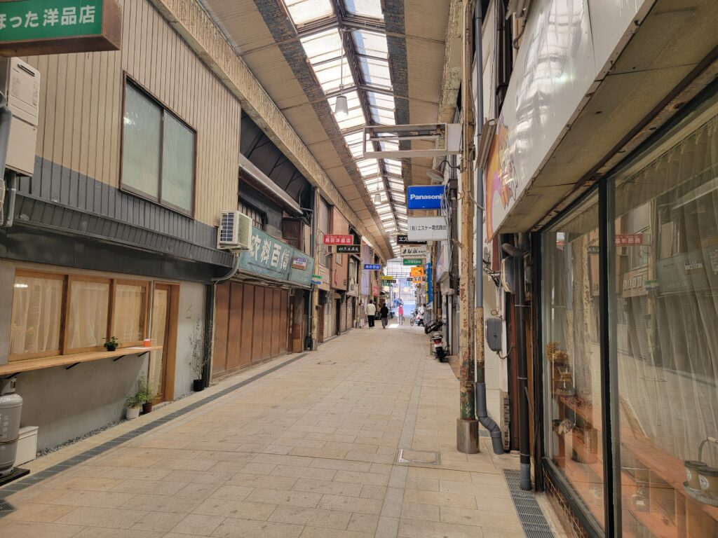前章でもお見せしたアーケードのシーンですが、iPhone 13 Proも比較的明るく撮れます。