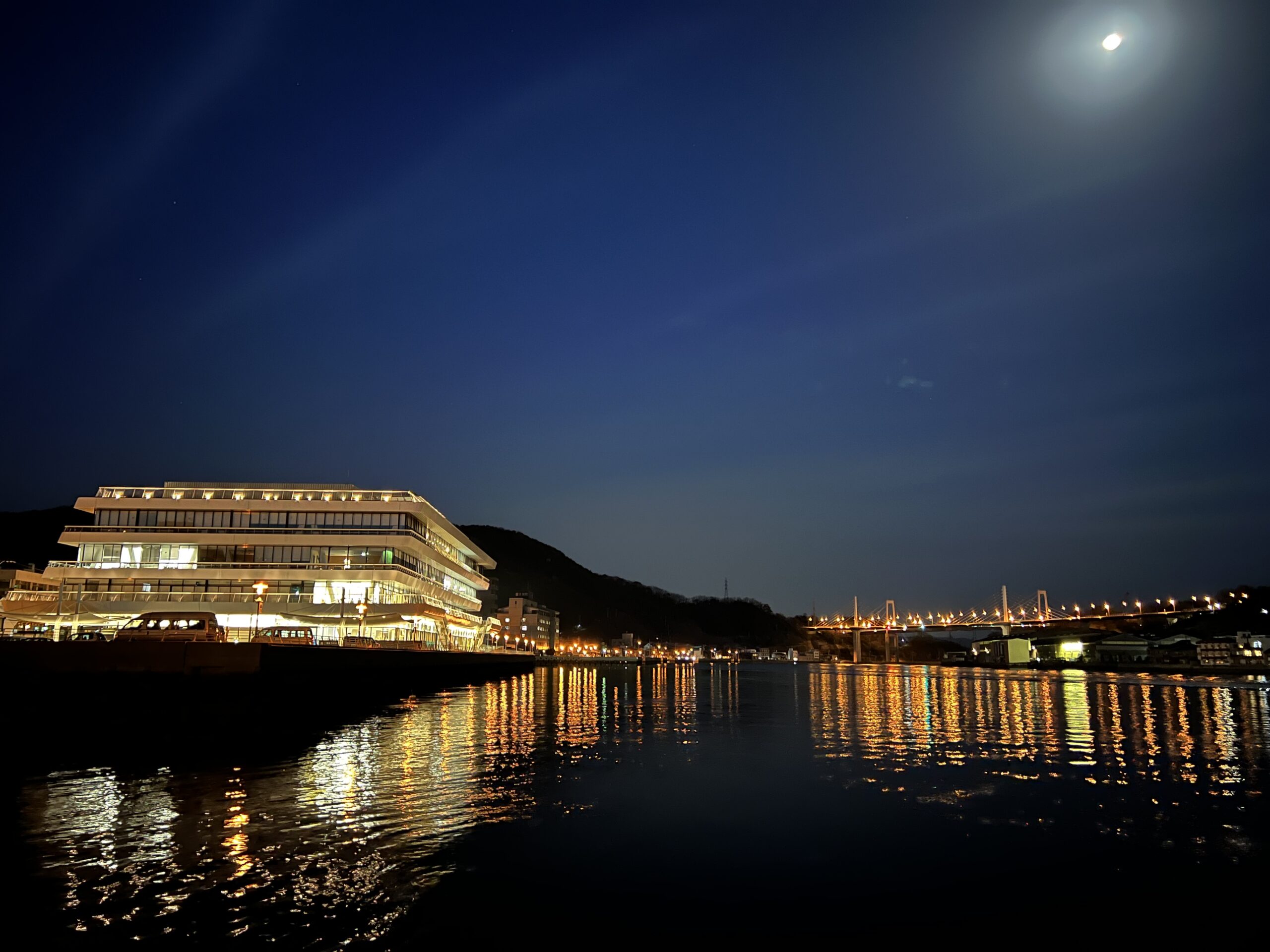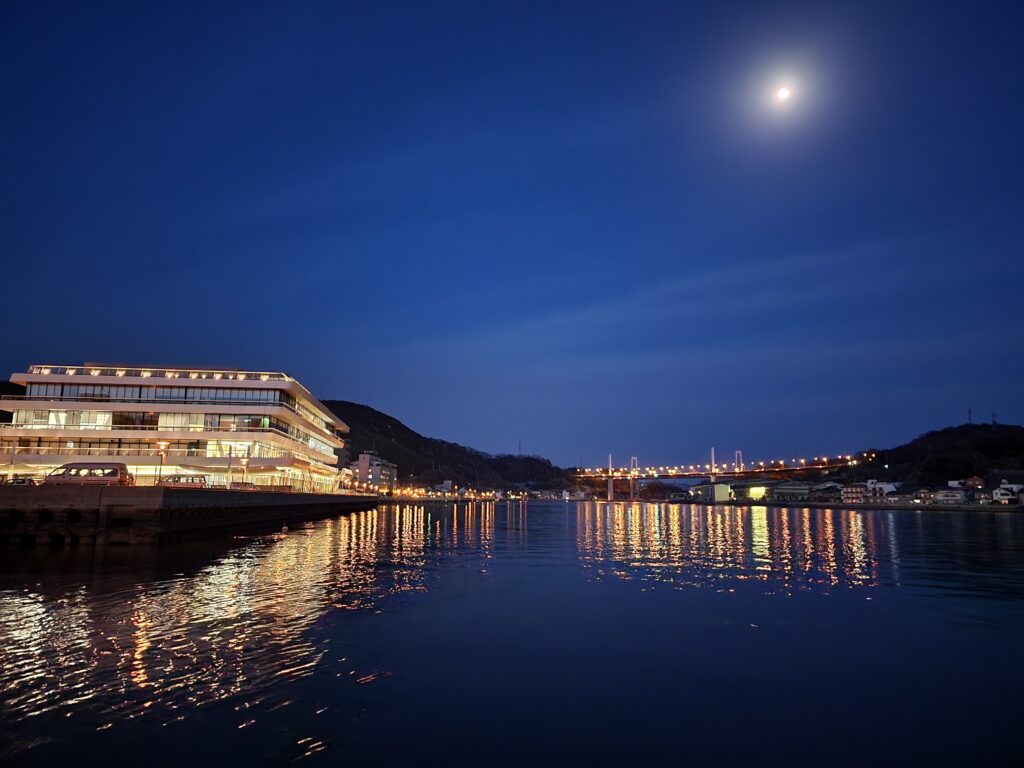 比較的明るい尾道市役所を3倍ズームで撮ると、だいぶきれいに撮れます。