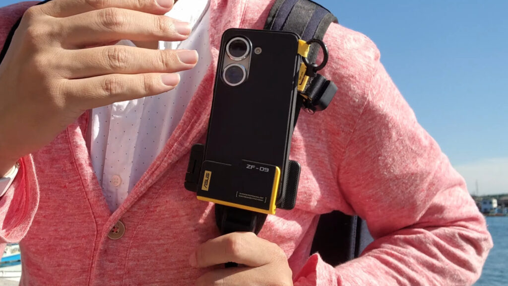 また、バックパック(リュック)のショルダー部分にZenfone 9を挿し込んで持ち運べ、必要に応じてすぐ取り出せるのは非常に便利。