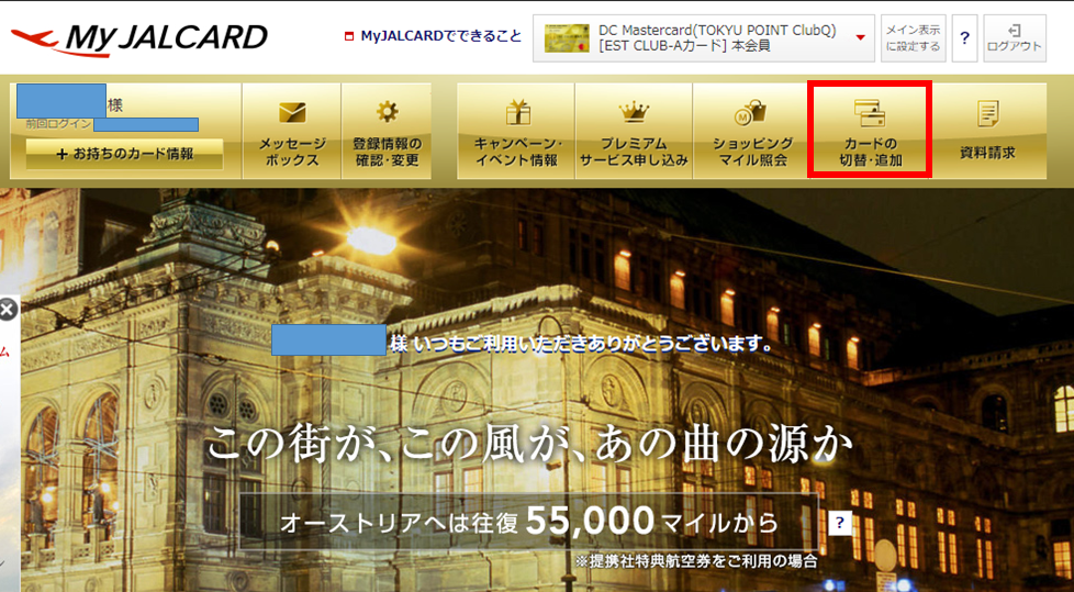 サイト上のナビゲーションメニューから、「カードの切替・追加」を選択します。
