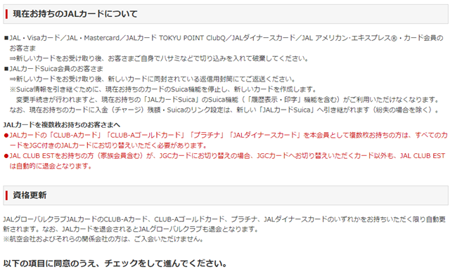複数枚CLUB-Aカード以上をお持ちの方は、すべてJGCカードに切り替える必要があります。
