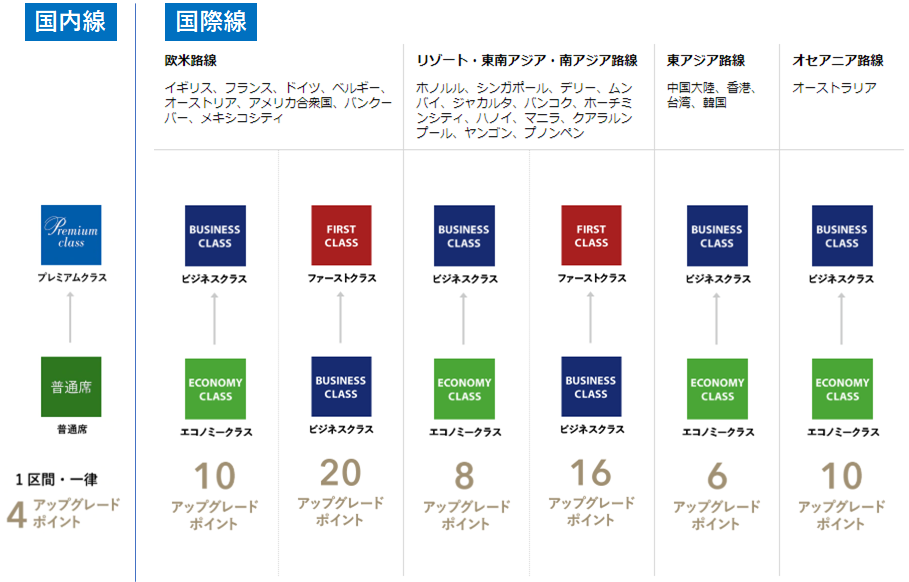 国際線では、アップグレードポイントを適用できるのは有償航空券のみとなります。