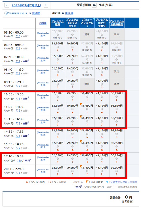 格安運賃からのアップグレードを狙う人にとっては、便選びも大事です。