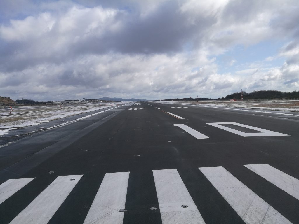広島空港上空は、雪に覆われ、白くなっています。いつも送迎している道路を上空から見ていると思うと、何か不思議な気分ですね。